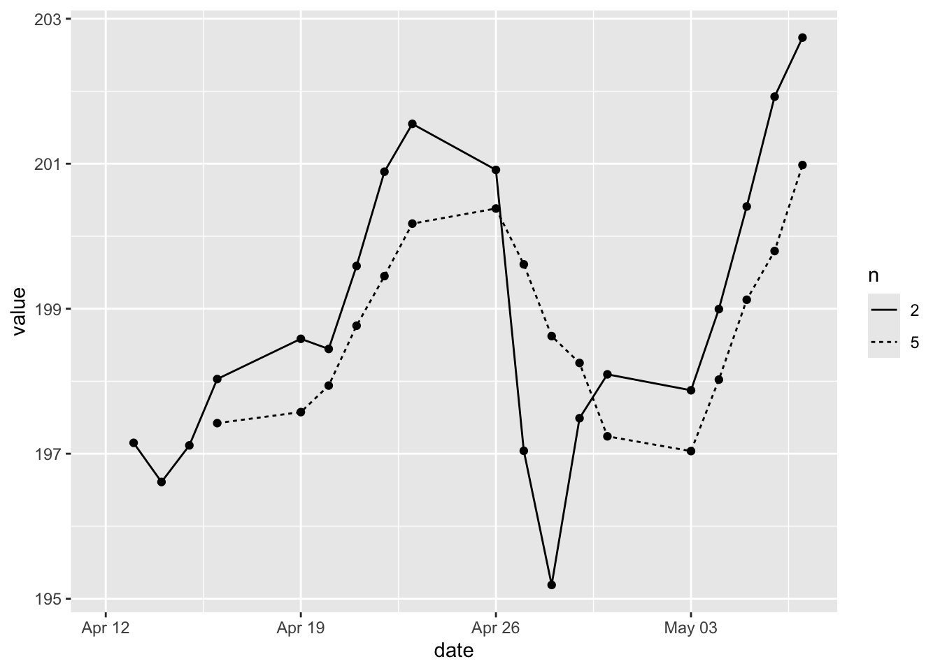 ggplot(aes(x = date, y = moving_avg, linetype = n)) +