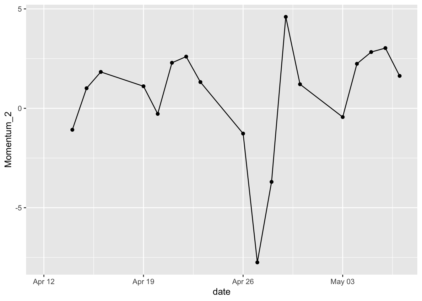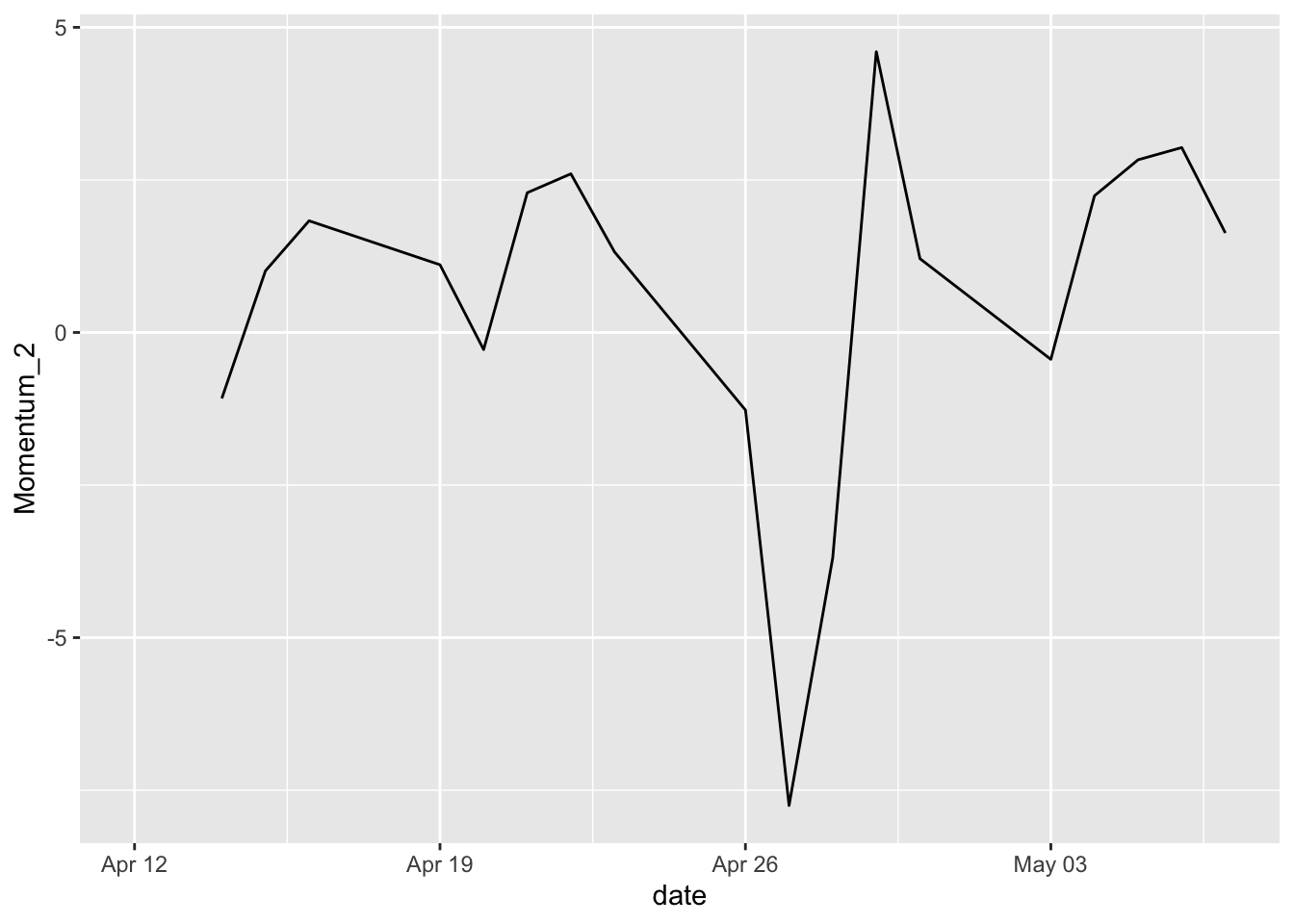 mutate(Momentum_2 = momentum(close, n = 2)) %>%